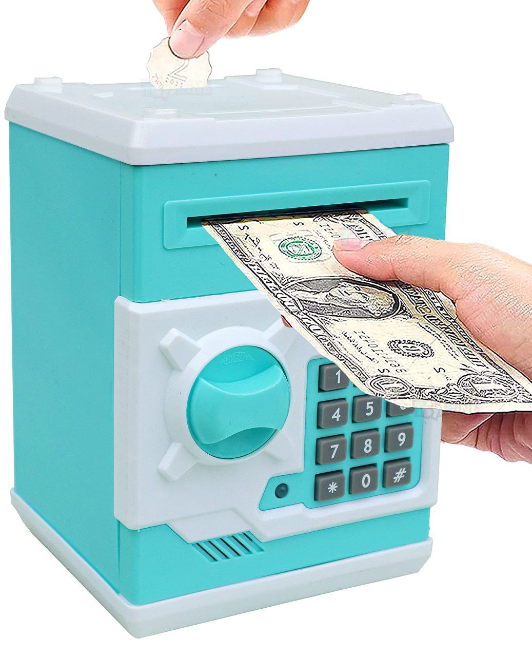 money safe or piggy bank designed for children aged 3+. Key features include: